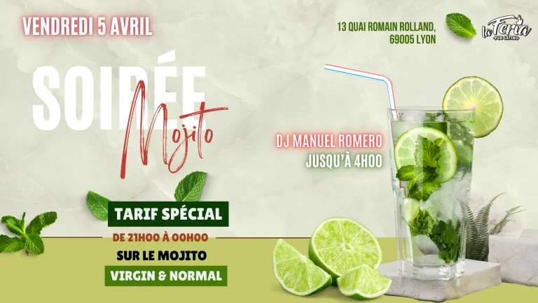 Rejoignez-nous pour une soirée explosive de Mojitos à la Feria Lyon le Vendredi 5 Avril ! 🍹🌴
